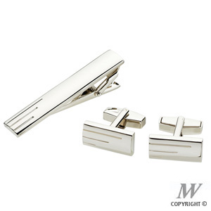 Metal tie clip and cufflinks set includes: