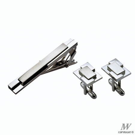 Metal tie clip and cufflinks set includes: